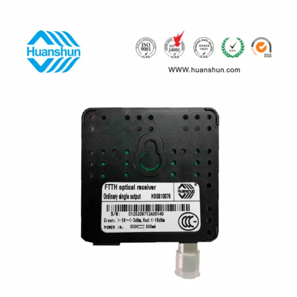 環(huán)順的HSGS10076光接收機是專為CATV網絡的FTTH 應用而設計的入戶型光接收機。具有結構小巧緊湊、式樣美觀、 應用方便等 特點,在高達1000Mhz的帶寬下能夠提供穩(wěn)定的輸出電平和優(yōu)異的性能指標,具有極寬的光功率工作范圍。